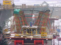 14. November 2001: Die östliche Pfeilergabel der Nordbrücke im Detail. Die