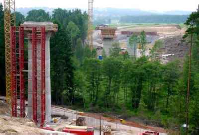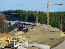 Westen schon seit längerem fertig gestellt, doch noch fehlt der Überbau auf der nördlichen der beiden Brücken. Foto: H. Trefz