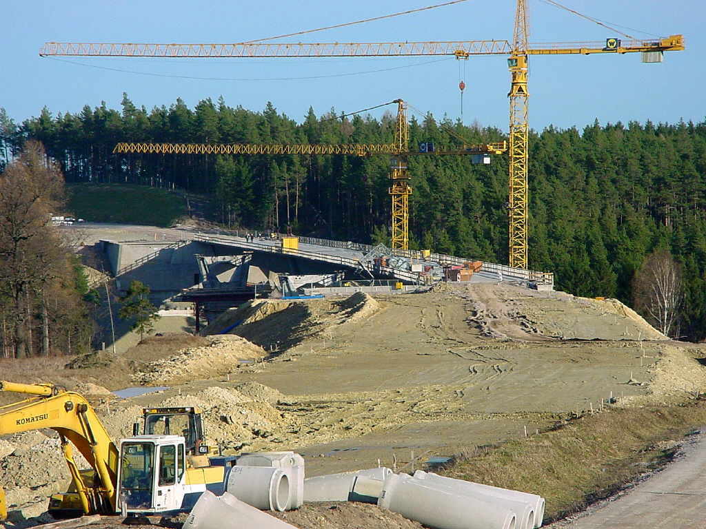 Stocken geratene Fortschritt des Überbaus der Nordbrücke ist inzwischen wieder besser erkennbar. Blick gen Osten. Foto: H. Trefz